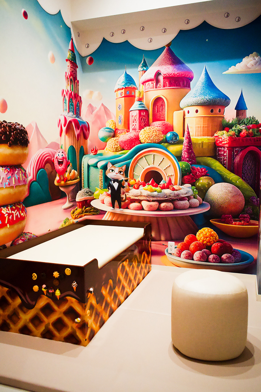 ドーナツなどお菓子がいっぱい!ベッドの側面にお菓子を並べてみよう(食べられないよ)。